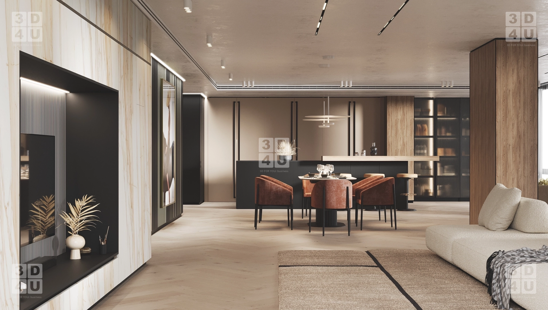 Этот 3D тур откроет для вас просторные апартаменты, где царит атмосфера уюта и сбалансированной гармонии. Интерьер построен на теплой, нейтральной палитре, создающей чувство спокойствия и надежности. Элегантные акценты, подобные вспышкам осеннего солнца, добавляют интерьеру энергии и игривости. Проект демонстрирует продуманное зонирование: здесь найдется место как для тихого отдыха, так и для жизни полной событий. Отдельное пространство, наполненное светом, отведено для детской, где царит своя особая, вдохновляющая атмосфера. Каждая деталь, включая мебель и отделку, была изготовлена на собственном производстве для идеального соответствия замыслу. Это гарантирует единство стиля и безупречное качество во всех комнатах. Этот тур — возможность увидеть, как создается современное семейное гнездышко, где каждый сантиметр продуман для комфорта. Погрузитесь в интерьер, который говорит на языке тепла и заботы.