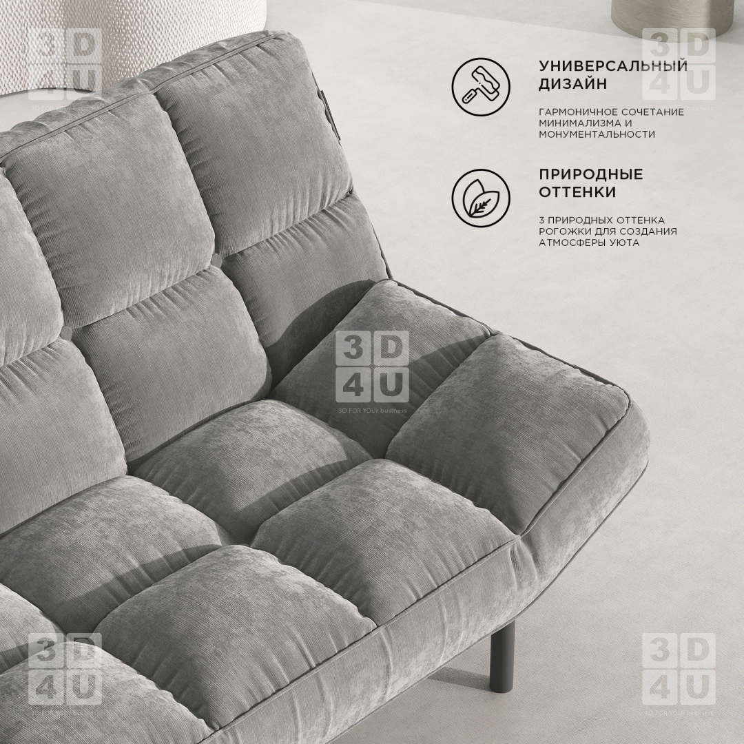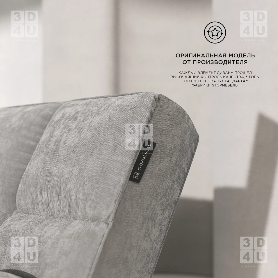 Карточки дивана «Iton» в минималистичном стиле для фабрики StopМебель. Особенности дивана выделены в макрокадрах.