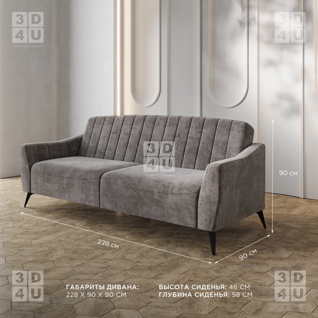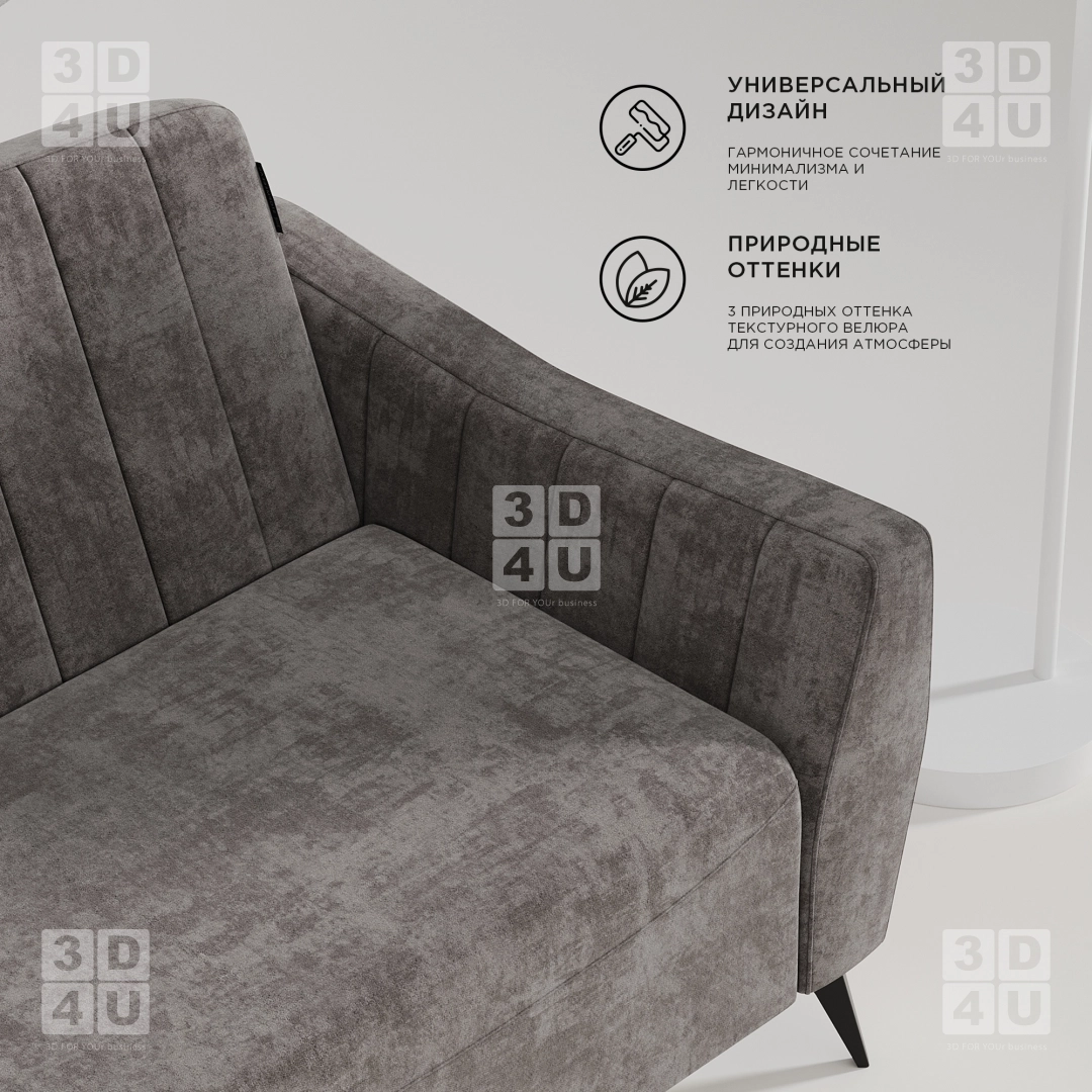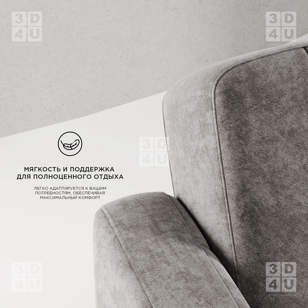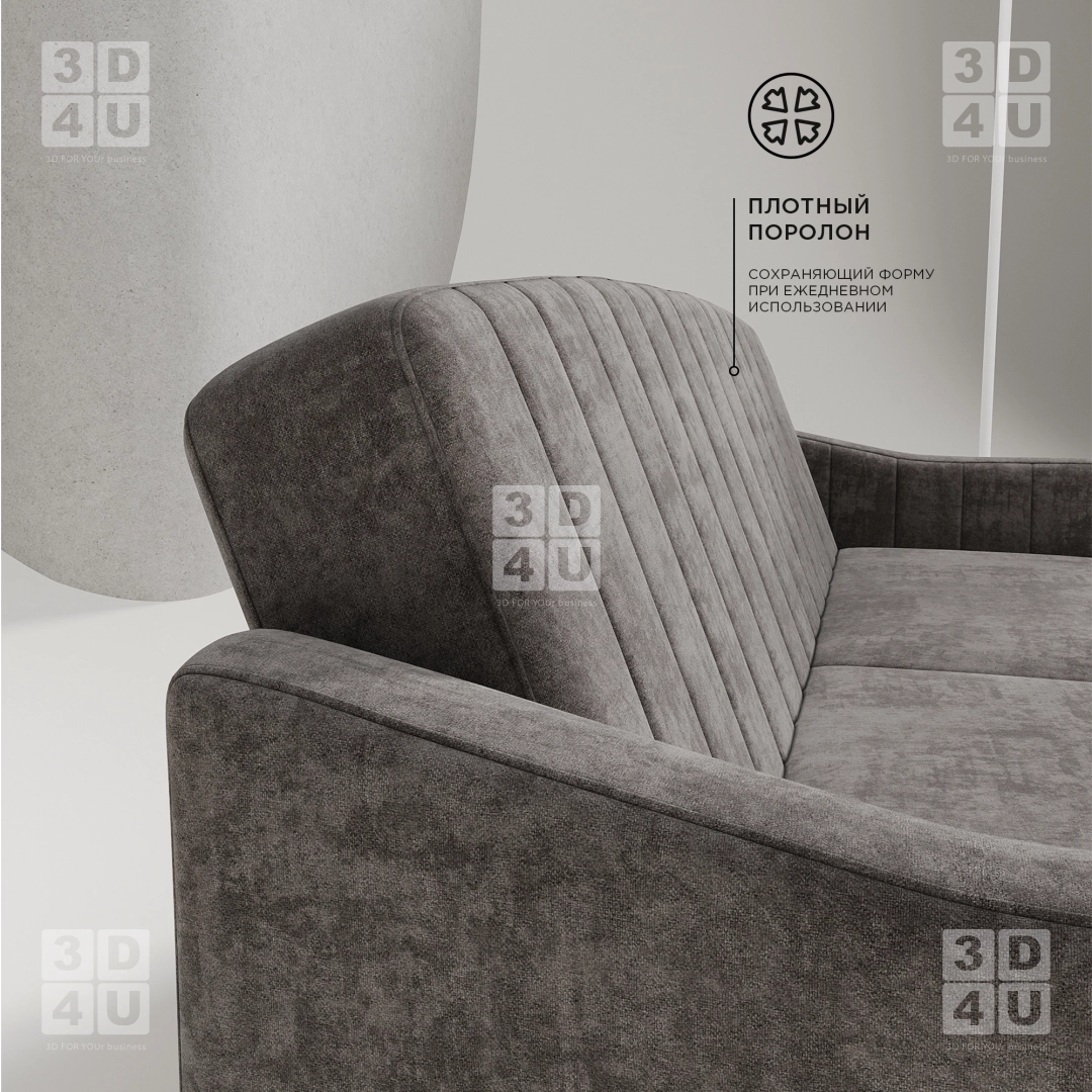 Карточки дивана «Singapore» в минималистичном стиле для фабрики StopМебель. Особенности дивана выделены в макрокадрах.