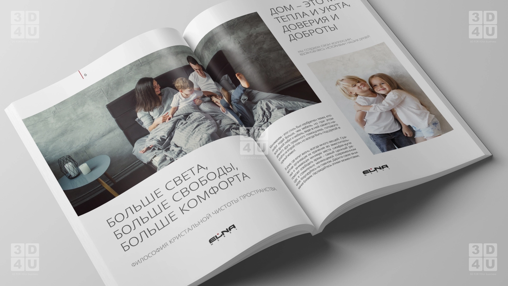 Мы представляем вашему вниманию каталог кухонь, созданных для мебельной компании ELNA. В дизайне каталога мы сделали акцент на минимализме, натуральности и природности.