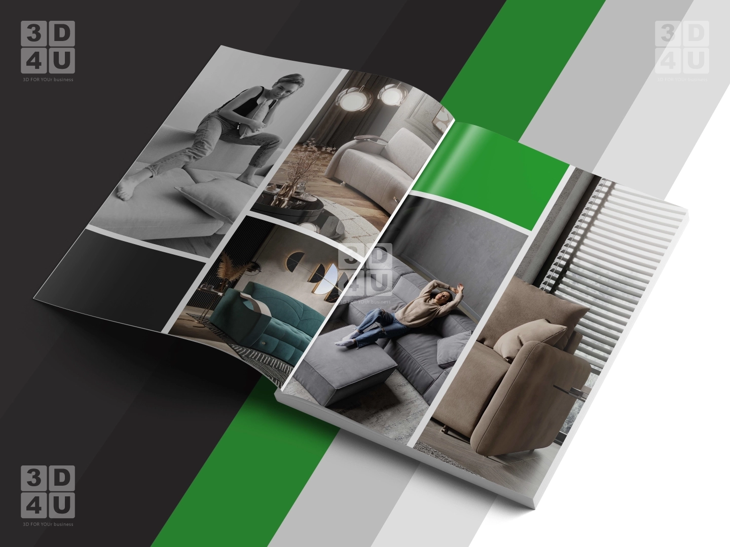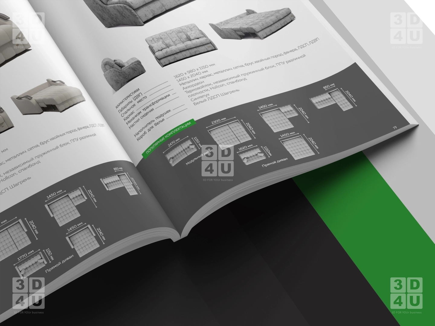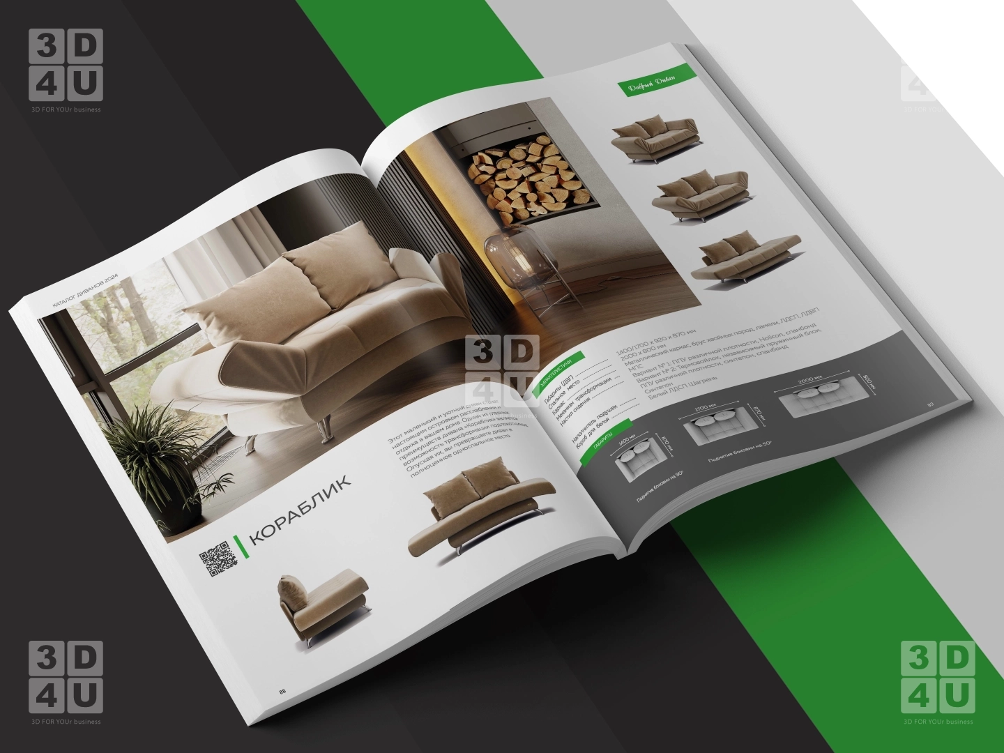 Мы разработали каталог мягкой мебели для компании «Добрый Диван». В каталоге сделаны несколько вариантов разворотов, подходящих под конкретную модель дивана. Все ренедеры и схемы были выполнены нашей студией. Для каждого дивана сгенерирован QR-код, ведущий на нужный раздел сайта.