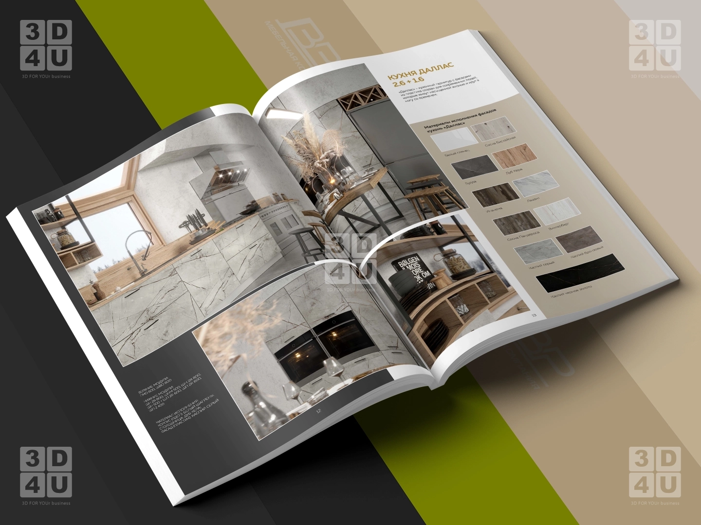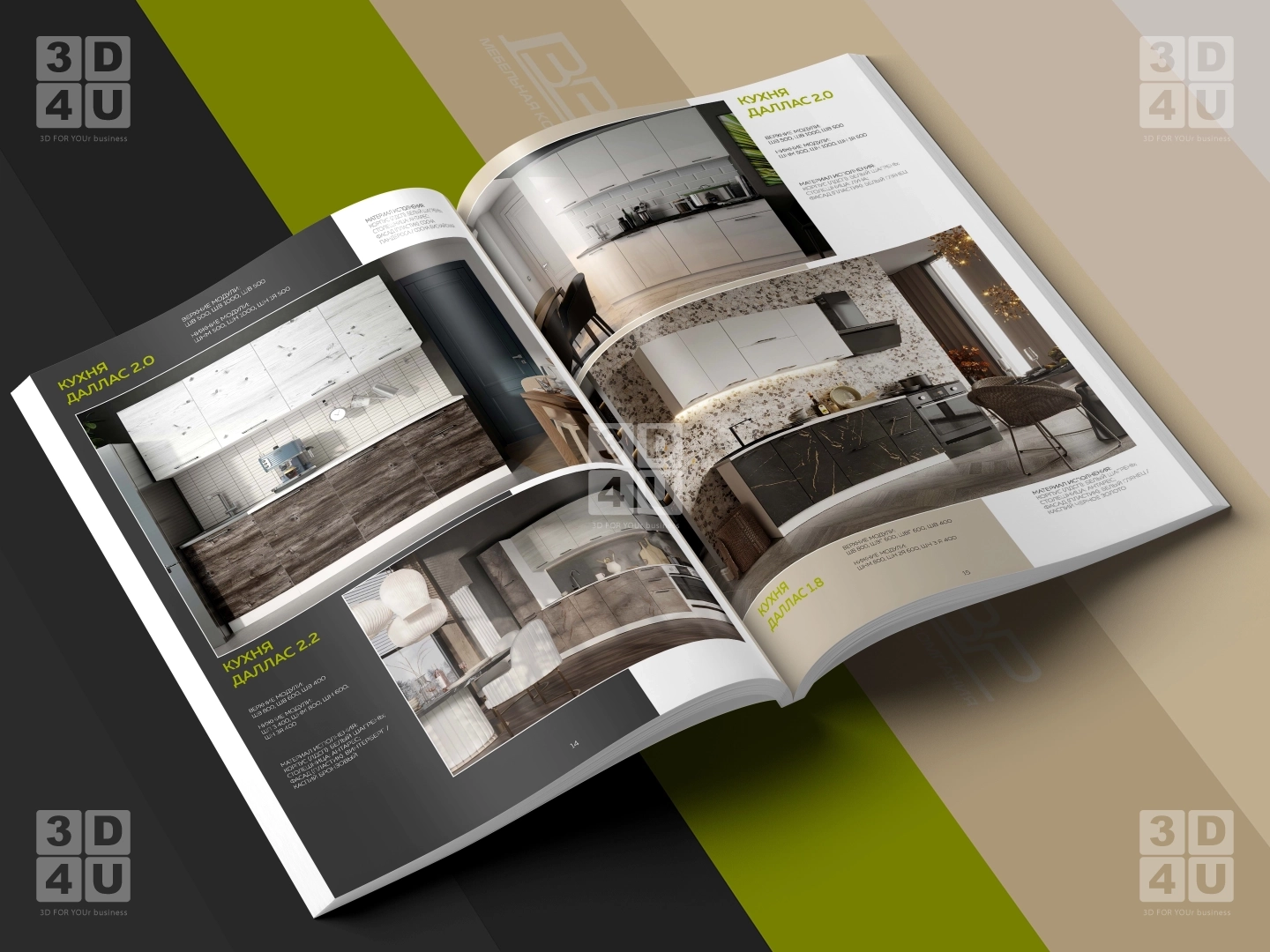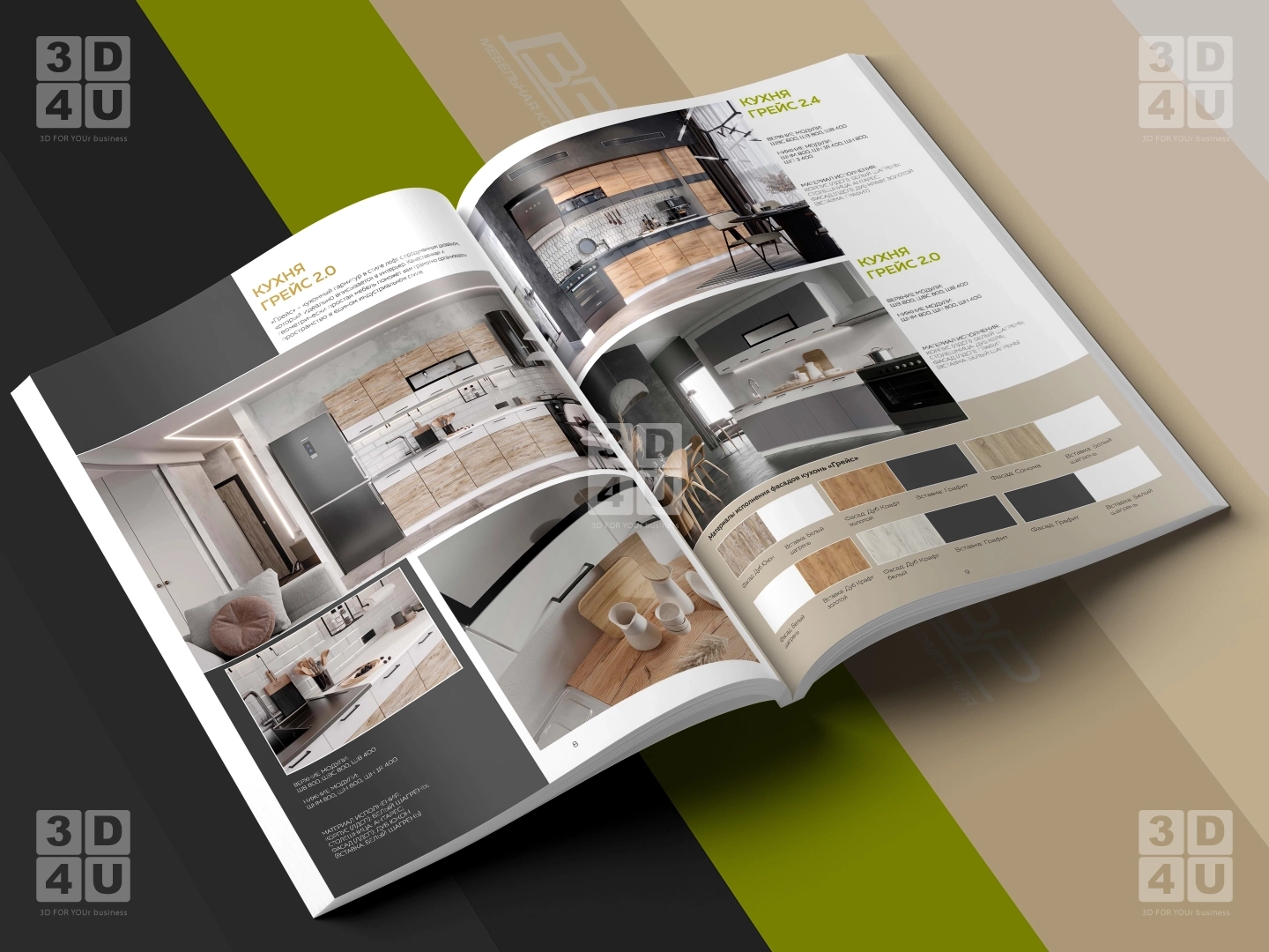 Мы сделали дизайн и верстку каталога кухооной мебели 2022/23 года. Для удобства пользования каталогом, мебель разделена на разделы согласно названию кухонь.