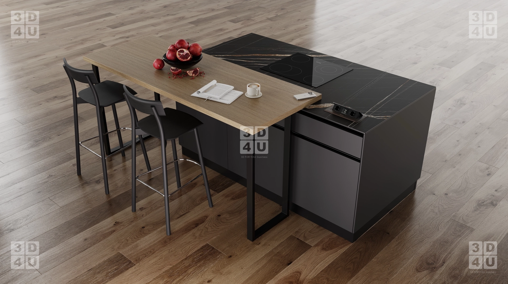 Наша задача заключалась в создании визуальных образов, которые позволяют оценить каждую мелочь: от фактуры поверхностей до взаимодействия цветов и материалов. Благодаря этому вы можете ощутить, как гармонично сочетается элегантность с энергичными нотками, превращающими кухню «Скарлетта» в источник ежедневного вдохновения.