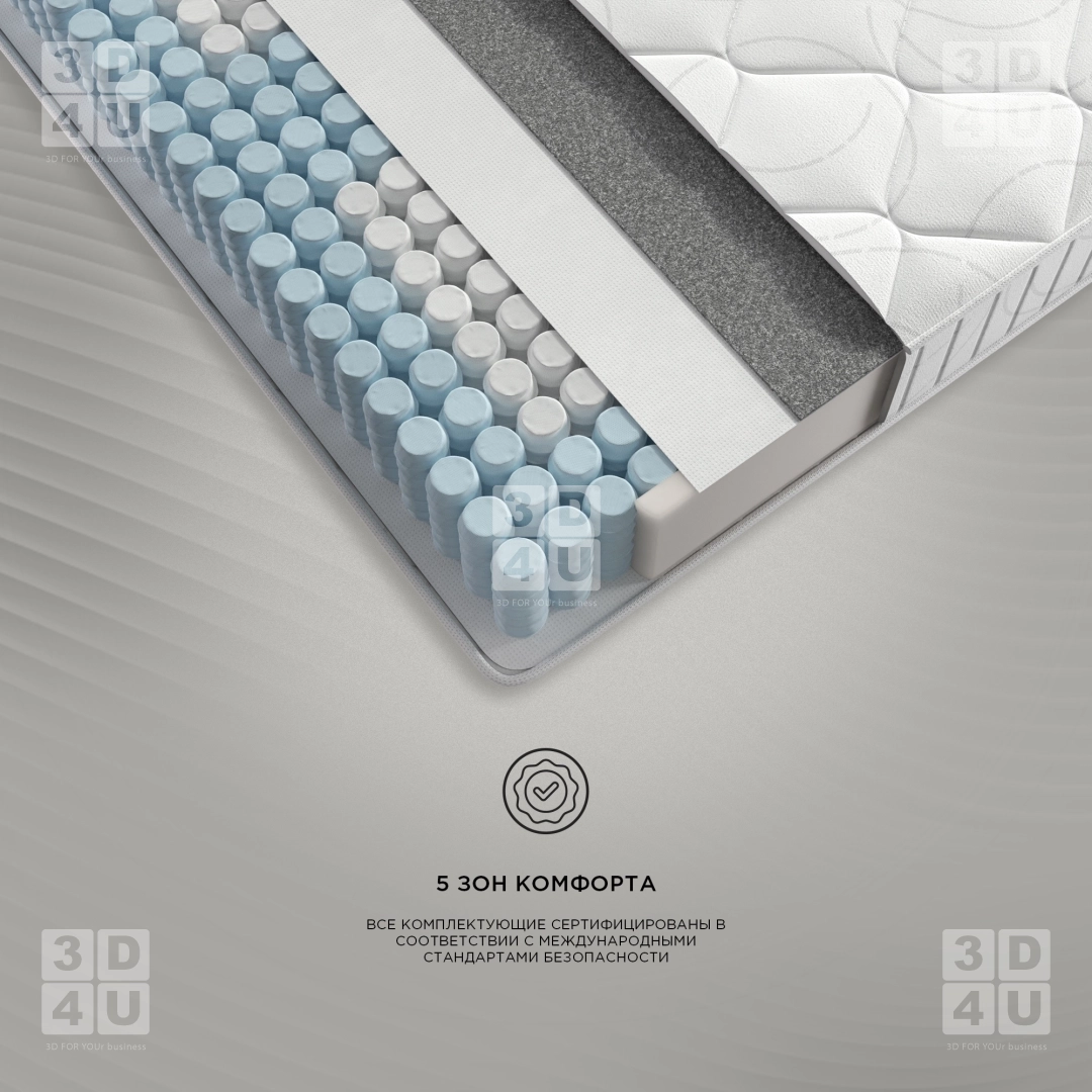 Карточки матраса «Renardi» выполнены в минималистичном стиле для фабрики StopМебель. Основные особенности матраса акцентированы в макрокадрах.