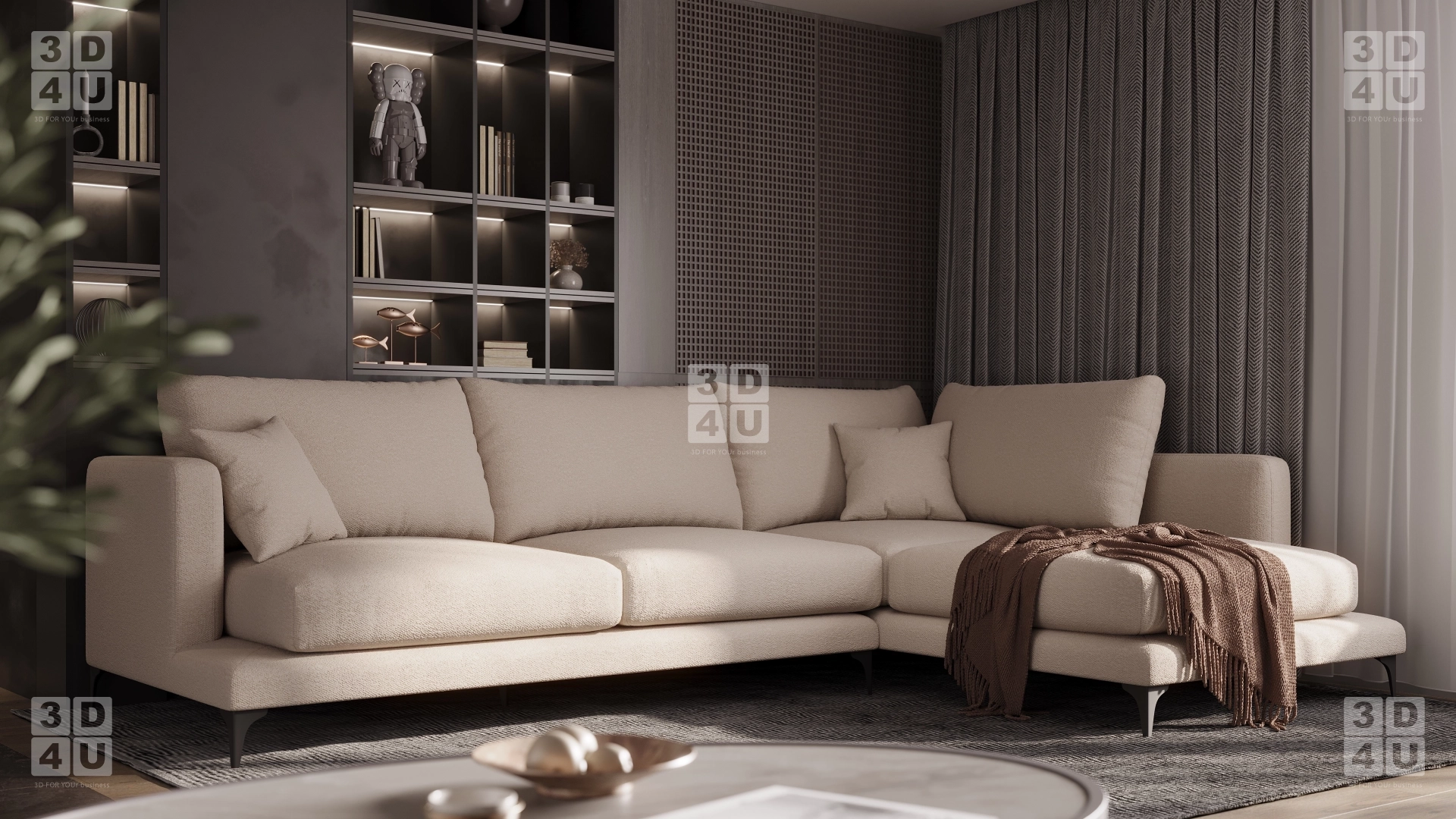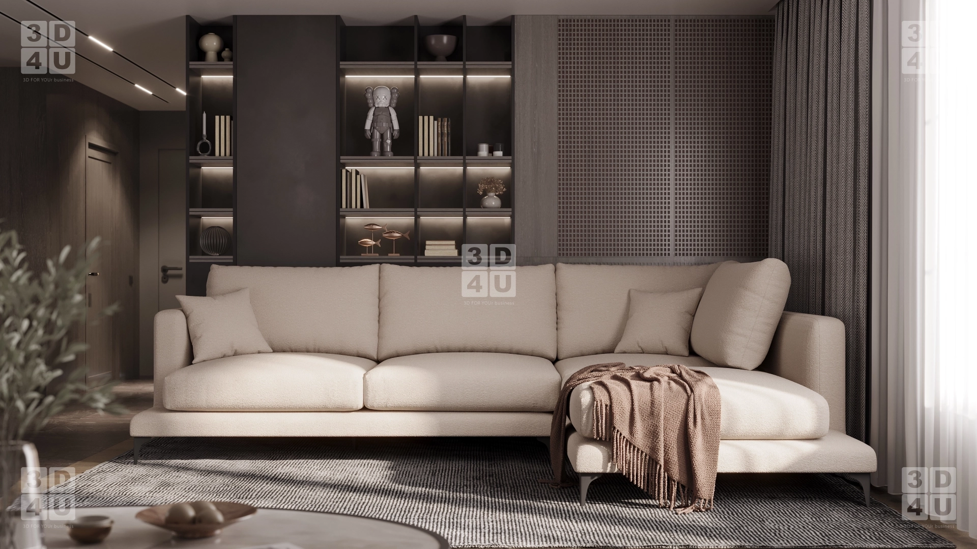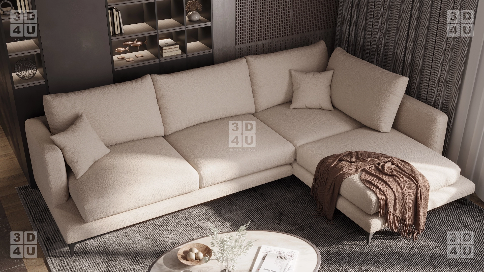 Мы сделали визуализацию стильного минималистичного дивана в уютном интерьере.